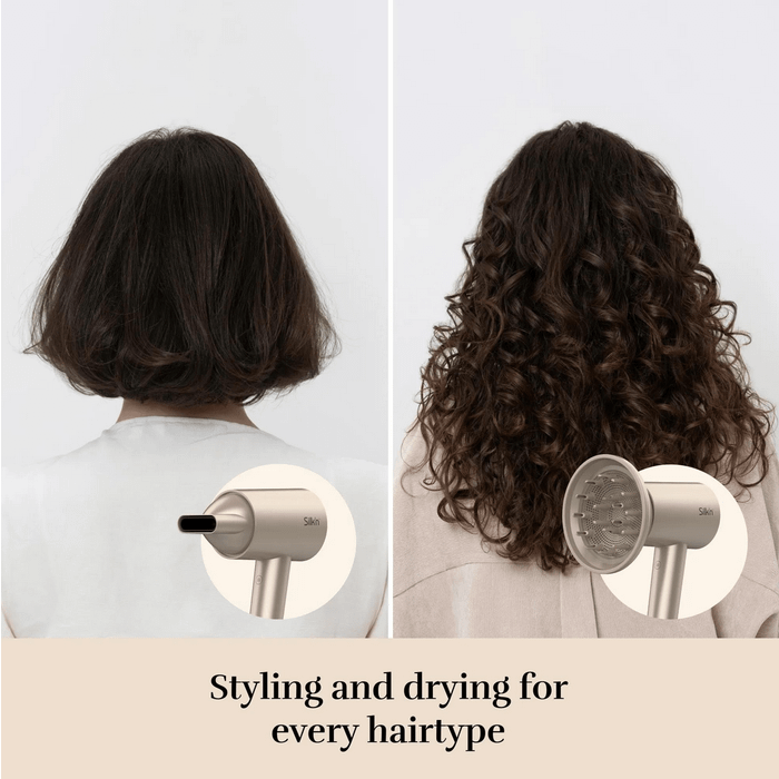 Met een krachtige borstelloze motor die tot 110.000 RPM draait en een luchtsnelheid van 76 km/u genereert, droogt de Silky Air Pro tot twee keer sneller dan een standaard föhn. Het dynamische LED-display geeft toegang tot 18 standen (3 snelheden en 6 temperatuurinstellingen van 39°C tot 98°C), zodat je altijd de perfecte combinatie kiest voor jouw haartype.