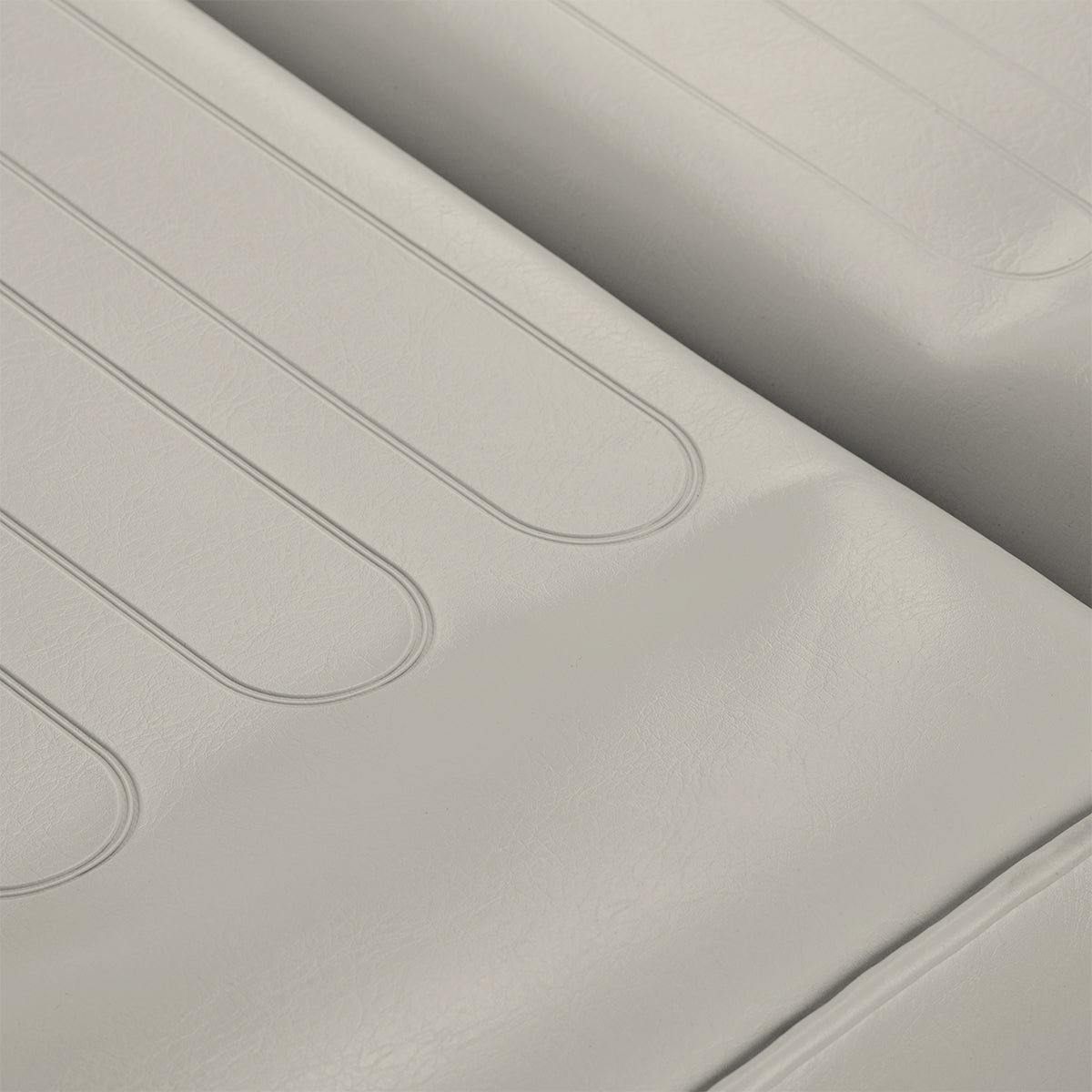 De stoel is gevuld met schuim met de juiste stevigheid en bekleed met semi-mat synthetisch leder in elegante beige tinten (sea salt). Dit materiaal maakt de stoel comfortabel in gebruik, vochtbestendig en eenvoudig te reinigen, wat essentieel is in professionele omgevingen. De correct geprofileerde randen geven de zitting een ergonomische vorm, terwijl de solide constructie zorgt voor duurzaamheid en langdurige stabiliteit. Het eenvoudige design en het tijdloze kleurenschema zorgen ervoor dat de stoel naadloos in vrijwel elk interieur past.