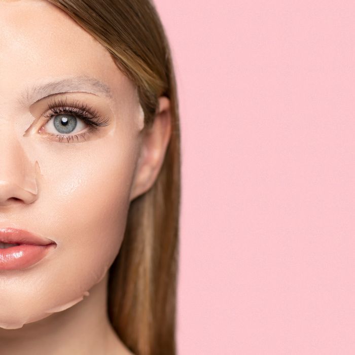 Plaats daarna het sheetmasker op het gezicht en laat 15 minuten inwerken.
