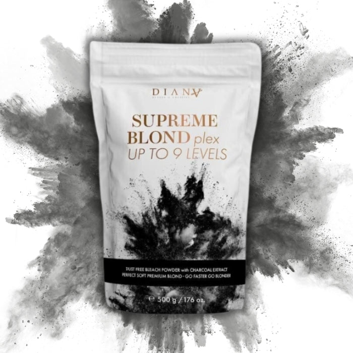 Supreme Blond met Bamboe Houtskool is een revolutionaire stofvrije ontkleurder met geïntegreerde Plex-technologie, speciaal ontworpen voor professionals die streven naar zuivere, koele blondtinten zonder schade of gele ondertonen.