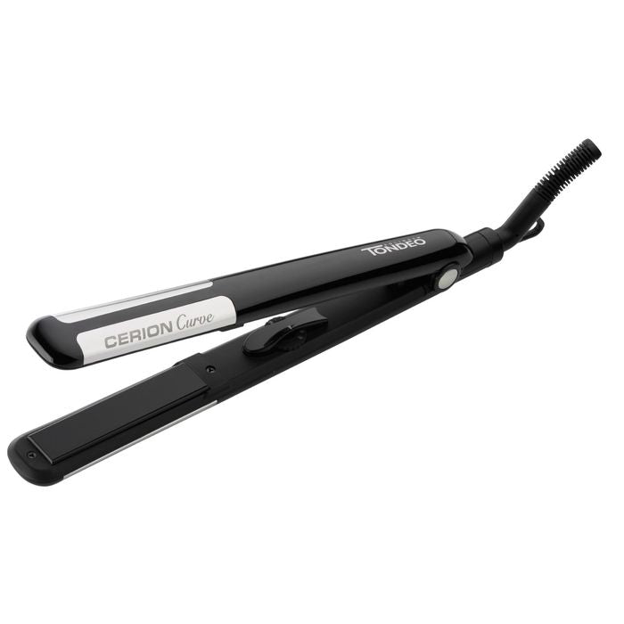 De Tondeo Cerion Curve Stijltang Zwart is de perfecte stylingtool voor wie wil kunnen switchen tussen glad steil haar en levendige krullen. Dankzij de met keramiek beklede platen wordt de warmte gelijkmatig verdeeld, wat zorgt voor een glanzend en pluisvrij resultaat zonder het haar te beschadigen.