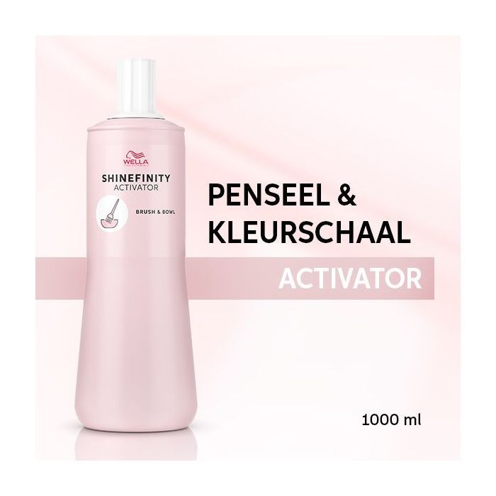 Wella ShineFinity Activator 2% Penseel & Kleurschaal 1000ml is een professionele, ultra-milde activator ontworpen om samen met de ShineFinity Zero Lift Glaze te worden gebruikt. Deze activator zorgt ervoor dat de semi-permanente, glansversterkende kleurbehandeling tot wel 6 weken zichtbaar blijft, zonder oplichting en zonder enige vorm van haarbeschadiging. De unieke Balanced pH Technology houdt de pH-waarde tijdens het volledige kleurproces onder controle, waardoor de haarschubben sluiten, het haar glad wordt en een intense, voelbare glans ontstaat.